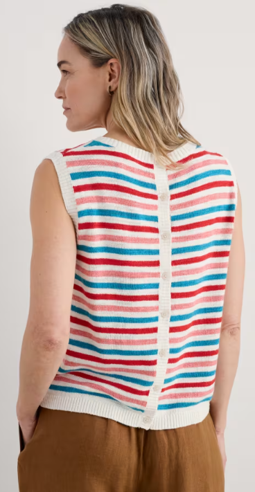 SEASALT CORNWALL Knavock Cotton-Linen Knitted Vest - Mini Cornish Pink Sky Mix