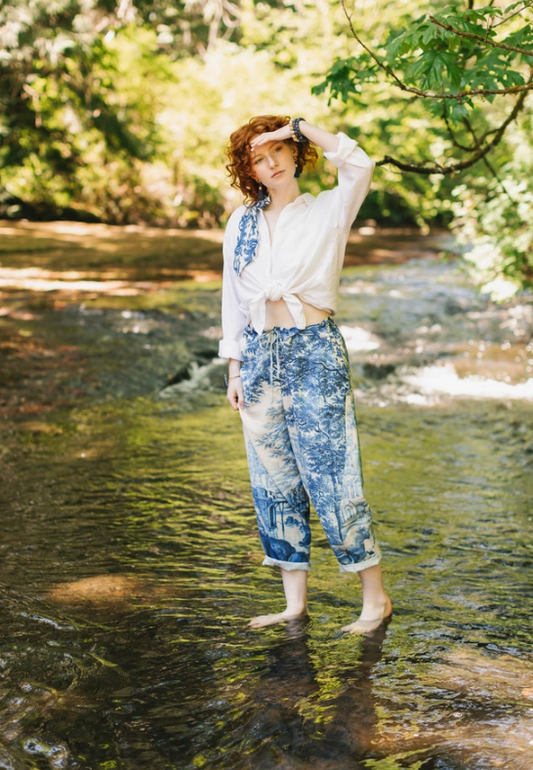 MARKET OF STARS - Let the Light in Linen Cropped Artist Pant w/ Delft Print