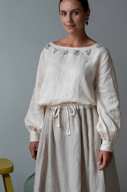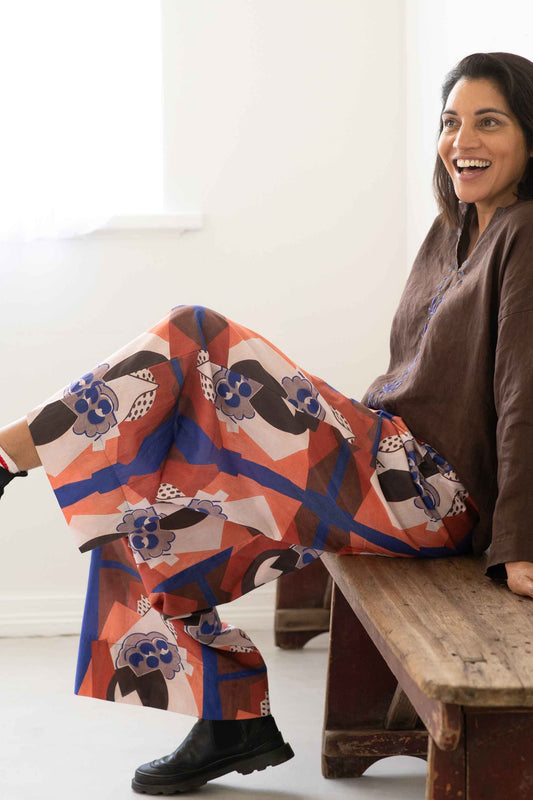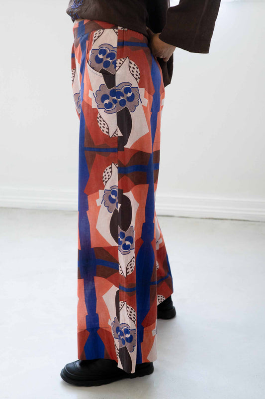 MARKET OF STARS - Let the Light in Linen Cropped Artist Pant w/ Delft Print