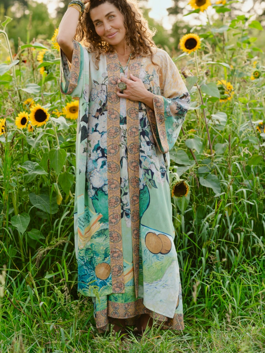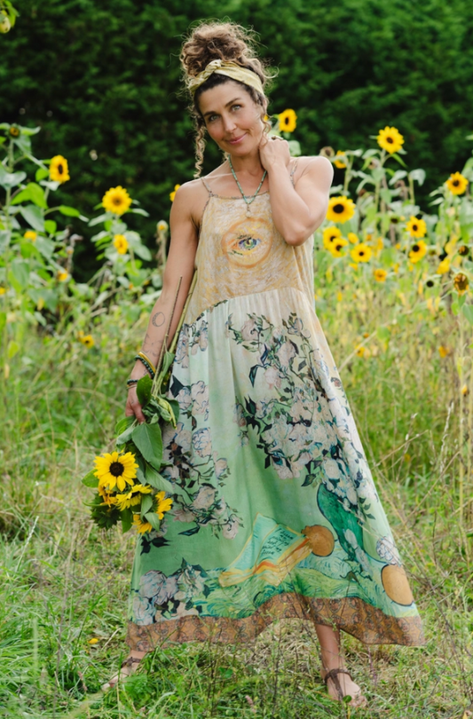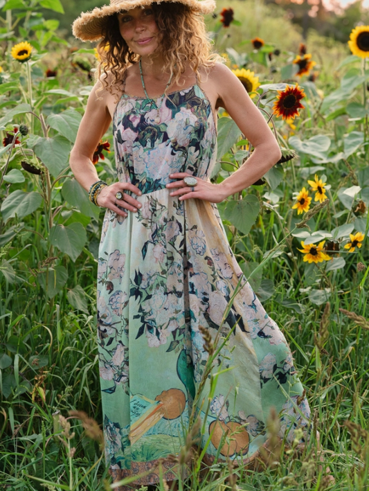 MARKET OF STARS -Love Grows Wild Bohéme Long Maxi Slip Dress w/ Bees Floral