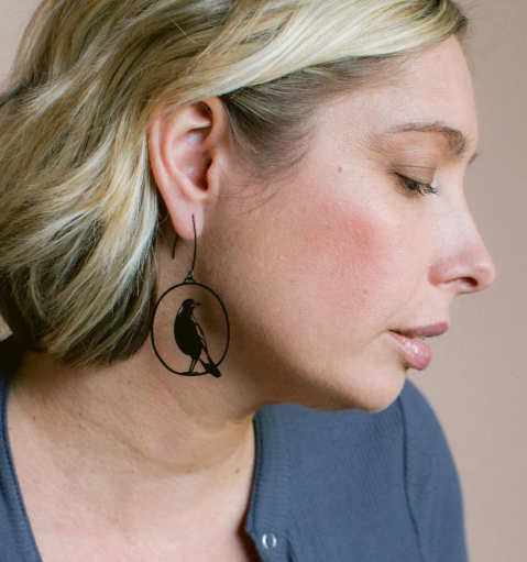 Denz + Co - Red Tailed Black Cockatoo earrings