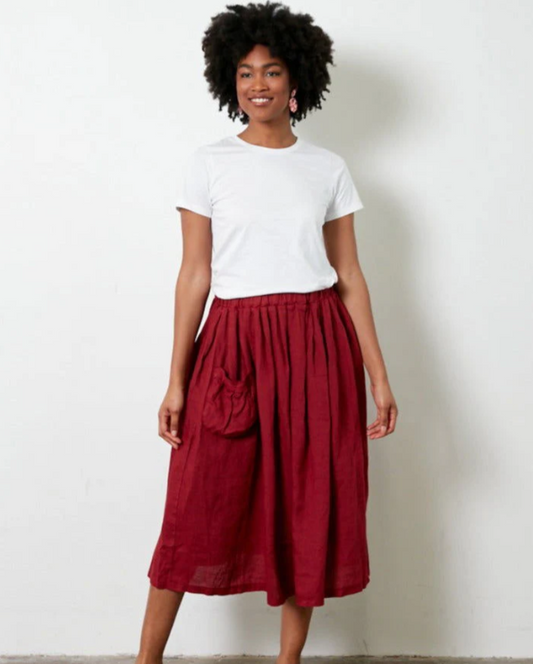 MONTAIGNE PARIS - Transeasonal Linen Skirt with Front Pocket