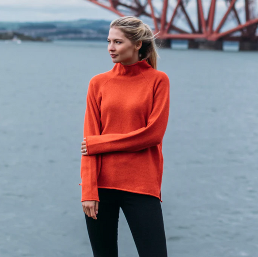 ERIBÉ Kinross Fairisle High Neck Sweater - Coral