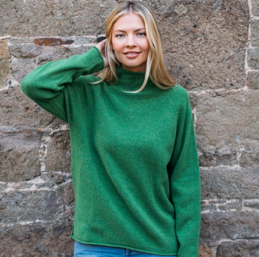 SEASALT CORNWALL - Port Kinnis Fair Isle Jumper Merino Wag Tail Tor Forest Green