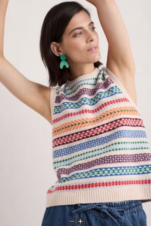 ERIBÉ Kinross Fairisle Waistcoat - Coral