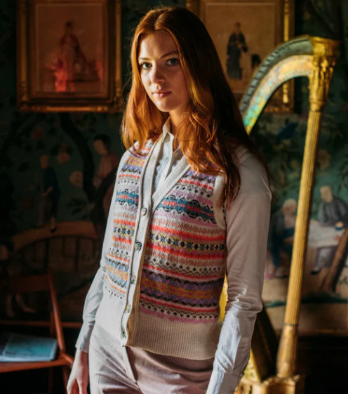 ERIBÉ Kinross Fairisle Waistcoat - Coral