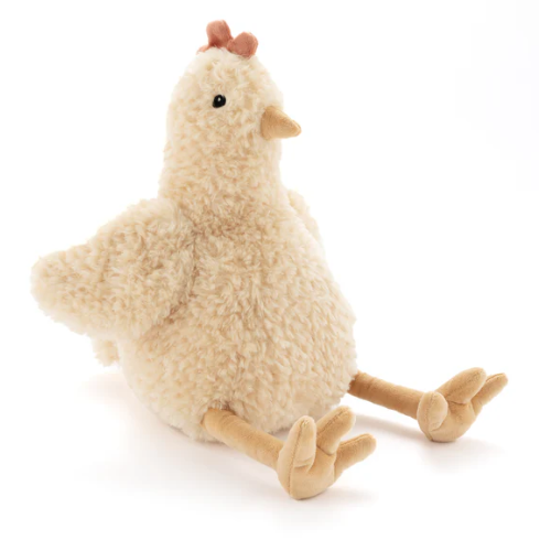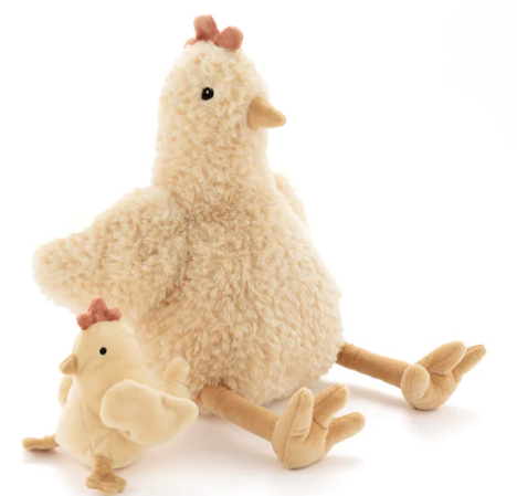 Harriet the Hen takes great pride in supplying the Nana Huchy Farm with fresh, golden eggs each morning. She clucks with satisfaction as her contributions fill the baskets. However, rainy days are her nemesis, wet feathers & soggy earth make her grumpy. On those dreary days, Harriet prefers staying cozy in the coop, dreaming of sunshine & dry ground.