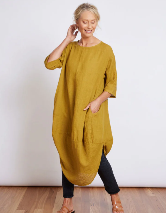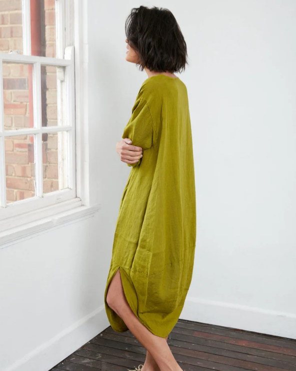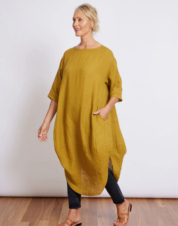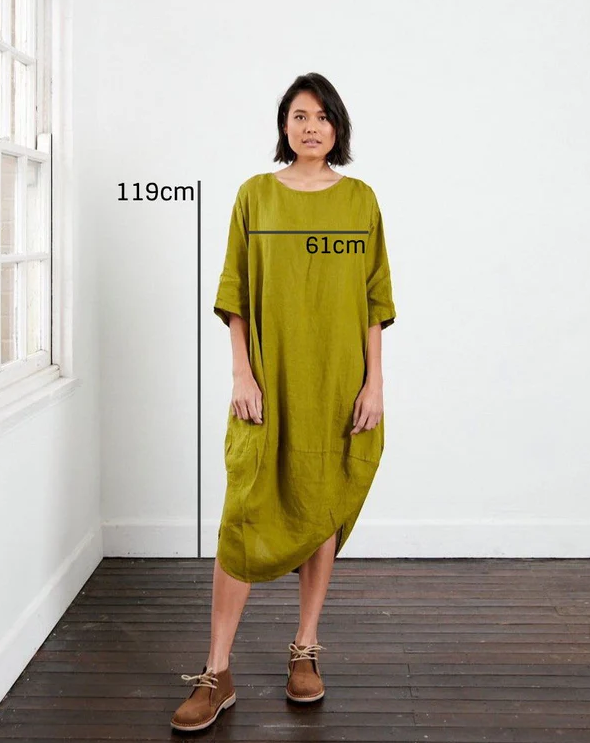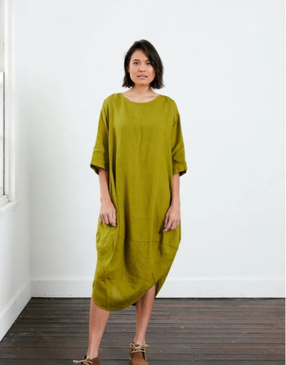 Our best-selling European linen scallop dress is designed to drape elegantly, featuring a scallop edge to create a flattering line. Made from a soft Italian linen, it's breathable, easy-to-wear and stylish. Available in a range of colours.