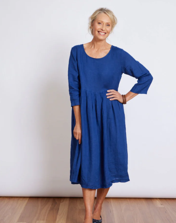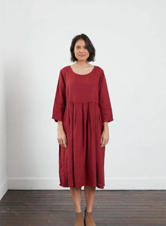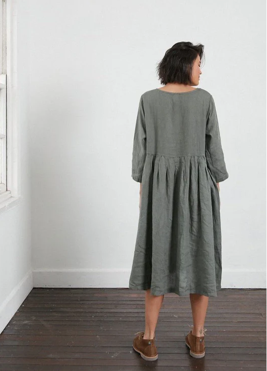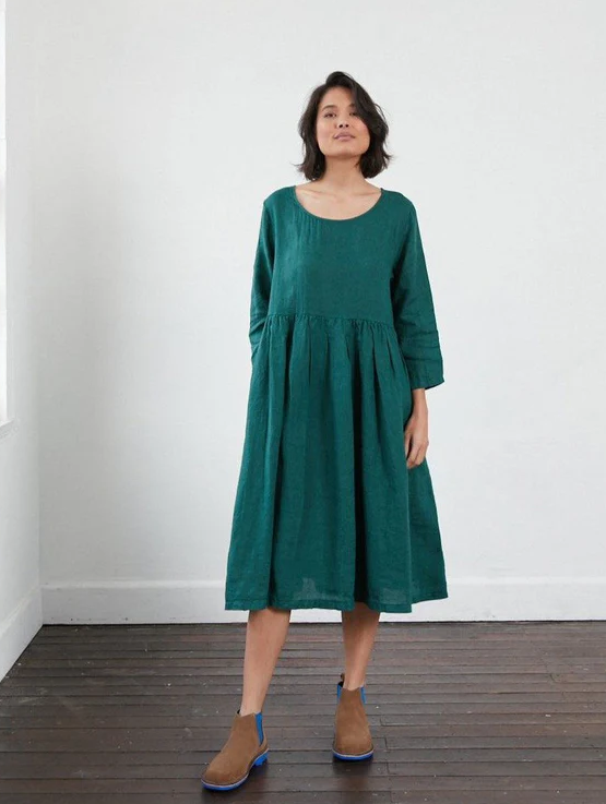 Crafted from our signature super soft linen, this dress has a beautiful drape and suits a range of shapes and styles. Featuring a billowing silhouette, it looks cool paired with your favourite sneakers, or ballet flats. With a lovely 3/4 sleeve it offers a little extra coverage, they can be rolled up or worn down to mix up the aesthetic. PLUS: it has pockets!