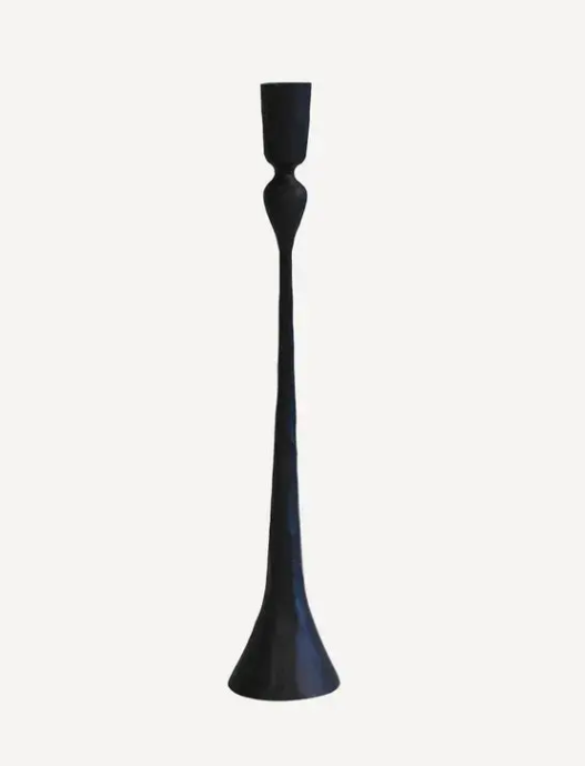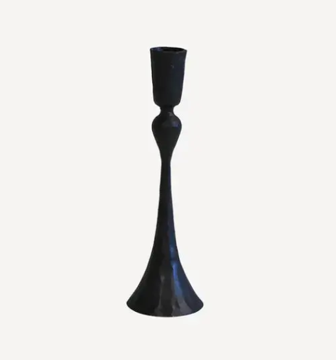 Style Description: Hand forged, cast iron candelabra in matte black. Holds three tapered candles.