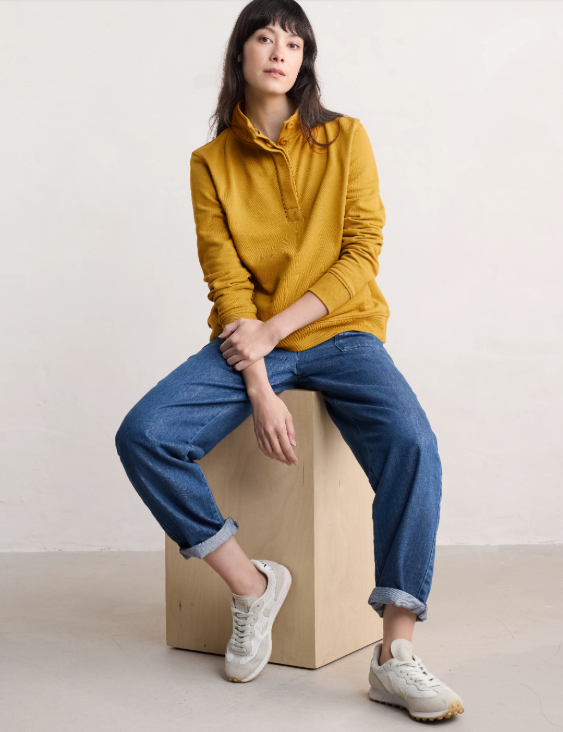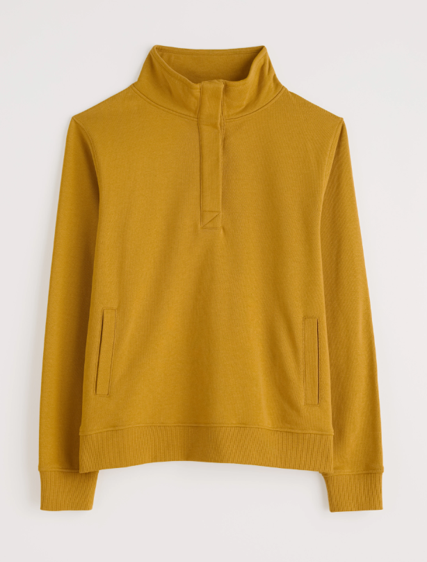 Introducing our Greenshank sweatshirt in the calming colour chamomile. Made from soft organic cotton jersey, it's perfect for any season. The stand collar can be worn for warmth or open to show off your T-shirt. Ribbed trims and welt pockets add stylish touches to this cosy layer.