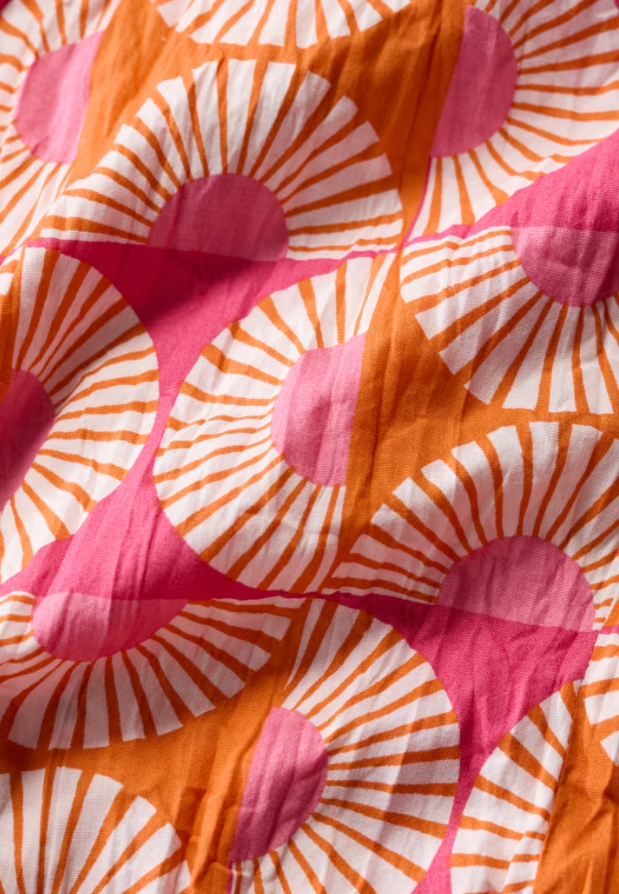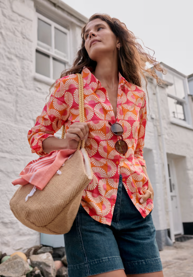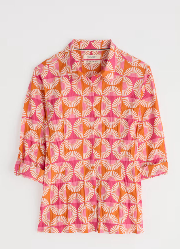 The Larissa Shirt is a year-round favourite. Made from the softest organic cotton with a casual crinkled appearance, the beauty of this shirt is that it doesn't need ironing & just wash and twist to keep the crinkle. This semi-fitted style is easy-to-style and comfortable, with long sleeves a button loops so you can roll up the cuffs to change your look. Each season, it showcases some of our most-loved prints, created by our talented textile designers.