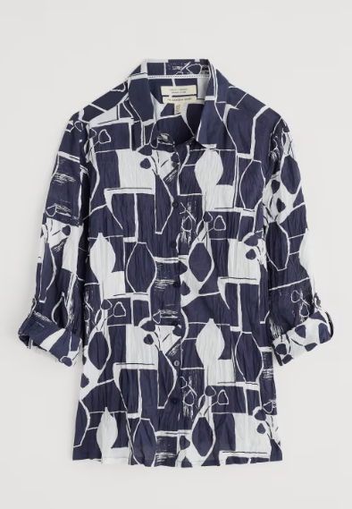 The Larissa Shirt is a year-round favourite. Made from the softest organic cotton with a casual crinkled appearance, the beauty of this shirt is that it doesn't need ironing & just wash and twist to keep the crinkle. This semi-fitted style is easy-to-style and comfortable, with long sleeves a button loops so you can roll up the cuffs to change your look. Each season, it showcases some of our most-loved prints, created by our talented textile designers.